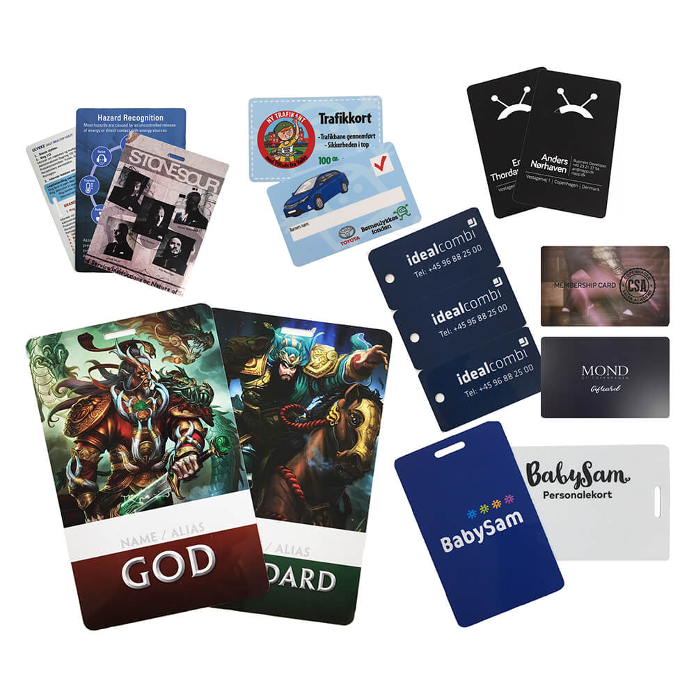 Et standard visitkort er 85mm x 54mm med tryk på 1 eller 2 sider, og på et 350 gr. papir. Mulighederne er mange, så det specielle, det skæve eller det figurskårne kan også leveres.